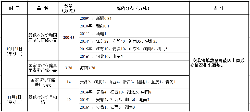 10月31至11月1日国家政策性粮食竞价销售交易公告