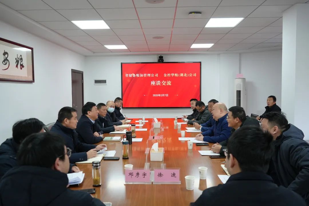 2月7日,金控华粮(湖北)粮食物流有限公司党支部书记、董事长严浩带队到省储备粮油管理公司作新春拜访,并与公司党委书记、董事长张从宇,党委副书记、总经理董成华开展业务交流座谈。