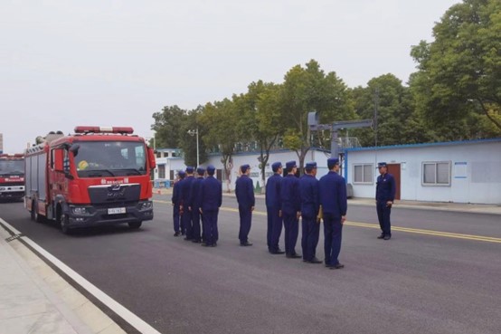 上午9时许,稻米中心上空警铃骤起,一辆红色消防救援车疾驰而入,一群身着天蓝警服的消防指战员迅速列队,一场警地联动消防演练拉开帷幕。油罐区道路旁,全副武装的消防战士展开消防水带,消防车轰鸣加压,一束束冲天而起的水柱喷射到模拟起火的8号油罐上,全体注意,水柱偏左一米,向上抬高两米,在对讲机联络指挥下,水柱摇曳调整,精准覆盖模拟起火部位。